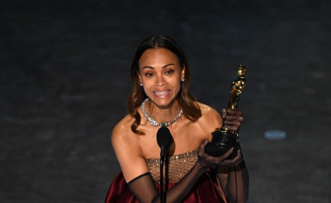 “Soy la primera americana de origen dominicano en recibir un premio de la Academia, y sé que no seré la última”, manifestó Zoé Saldaña al recibir el Oscar.